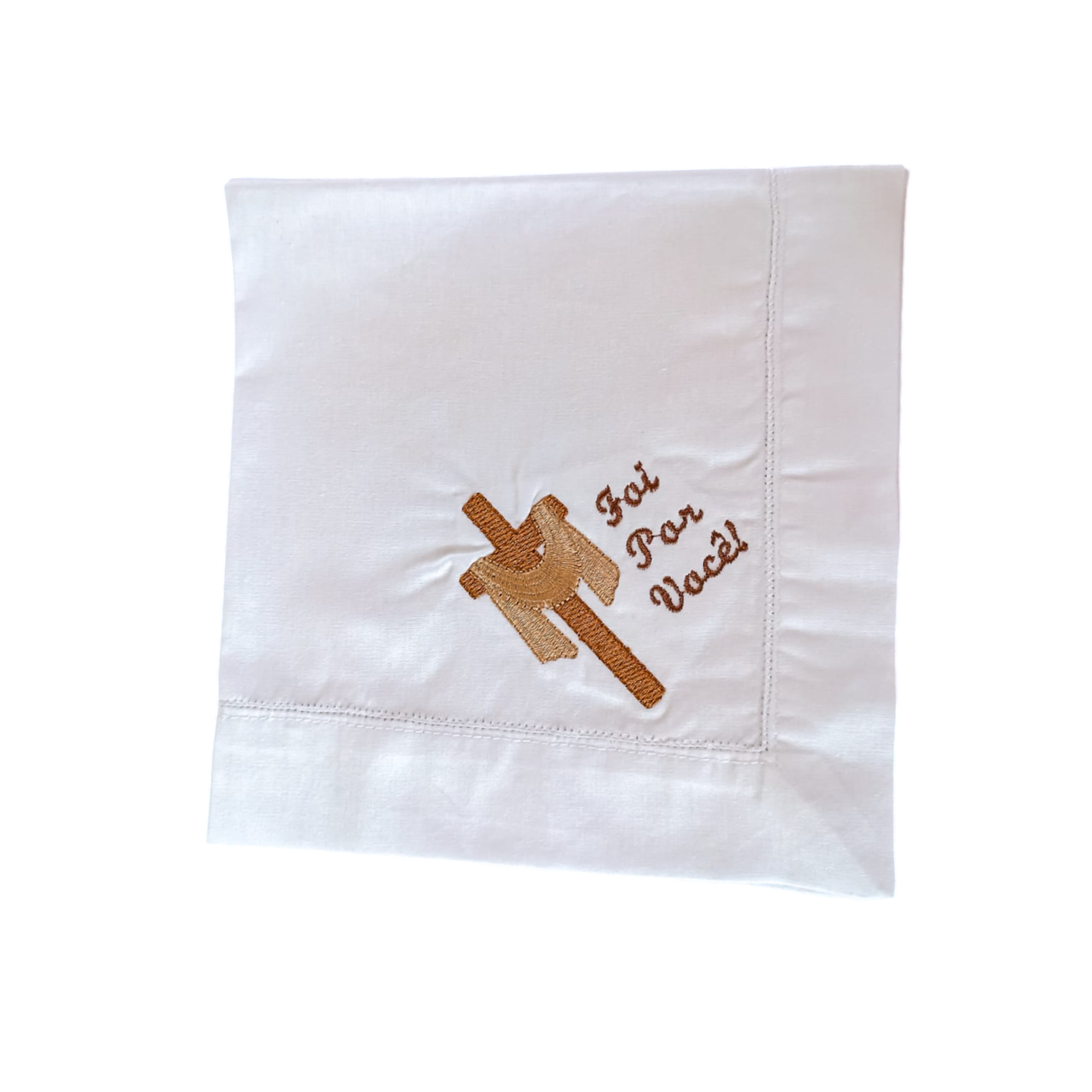 Confeccionado em tricoline 100% algodão, possui toque macio, excelente absorção e acabamento refinado. O bordado da cruz com a frase “Foi por você” expressa amor, entrega e propósito, tornando cada momento à mesa ainda mais especial.